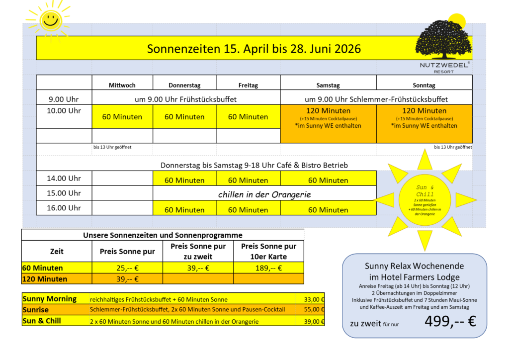 Sonniges Frühstück vom Buffet + 60 Min. Sonne € 30